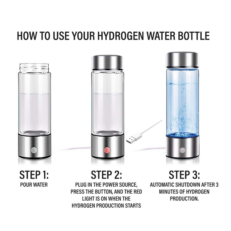 Fill the bottle with water, activate the hydrogen infusion by pressing the button, wait a few minutes for the process to finish, and then enjoy your drink. Be sure to adhere to the manufacturer’s guidelines for precise usage instructions.
